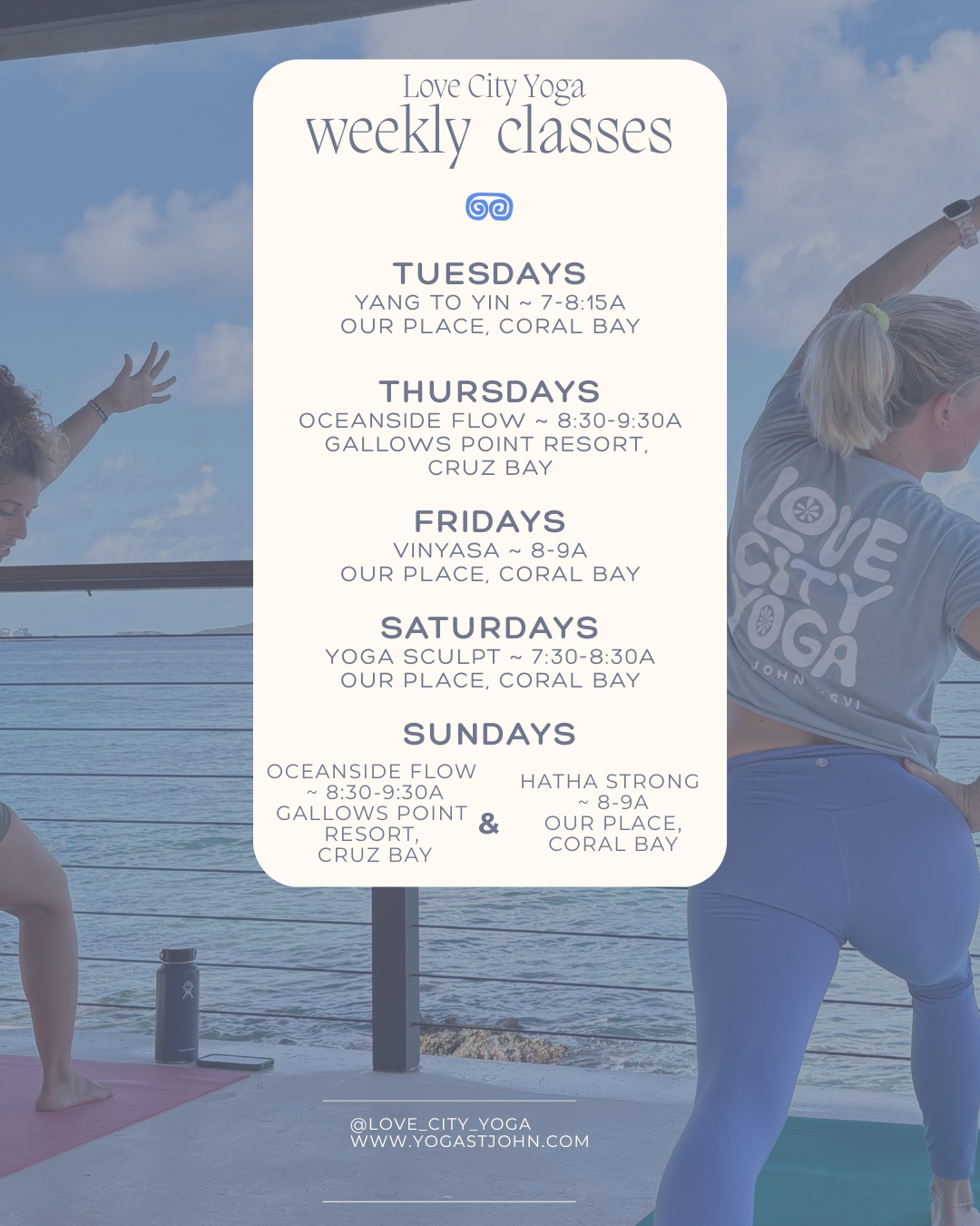'Corey came to the villa I was staying at for private classes while I was on vacation. They were the best classes! Very relaxing and just what I needed to start my day! I also had the chance to take a public class with Katie, was a great class! Highly recommend love city yoga for privates and also public classes:)' -Lauren Williston-Scott